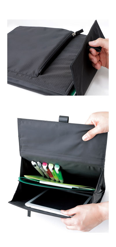 ・書類や資料、タブレットや筆記用具などをスマートに整理することができます。