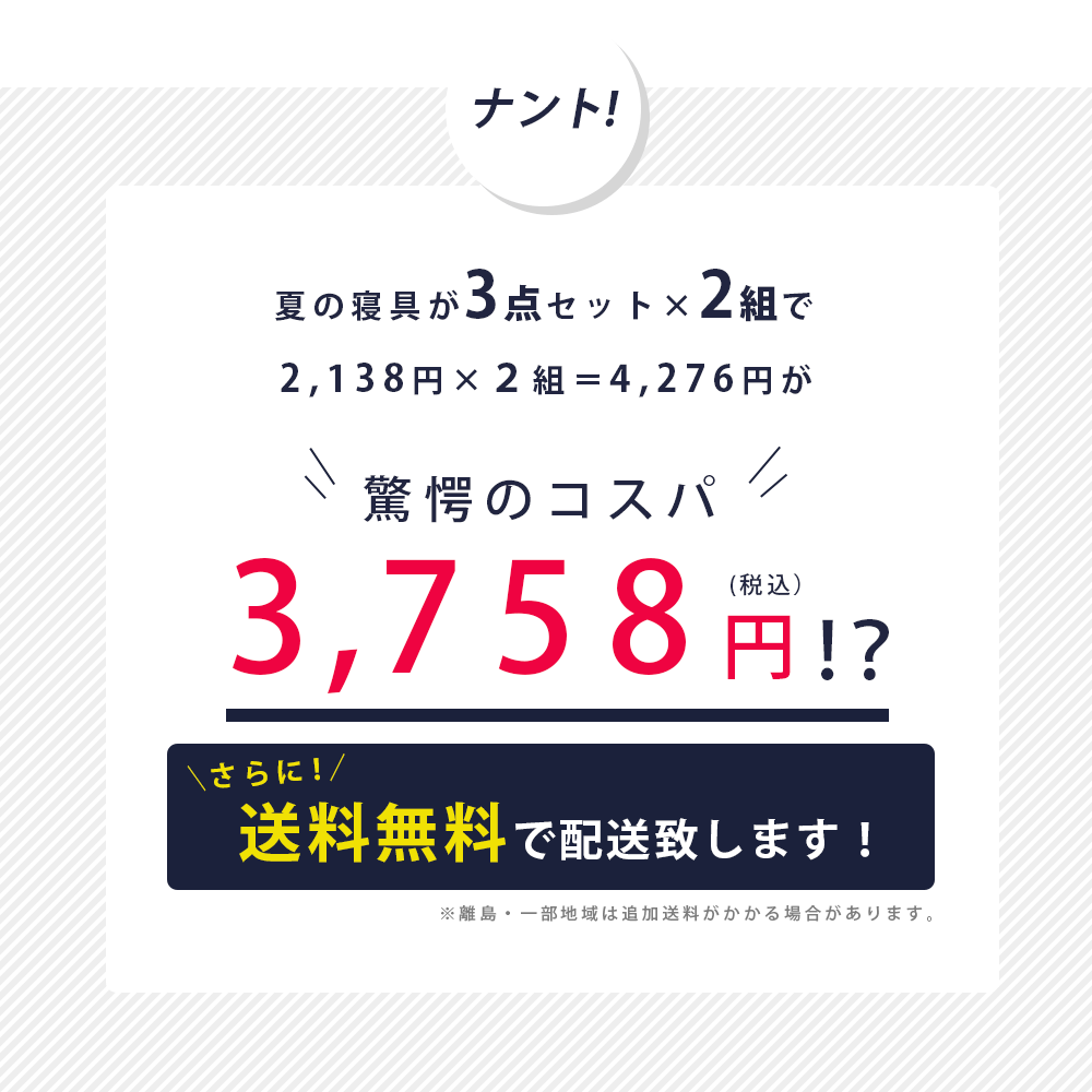 バリエーション一覧 3点セット【1組】 お買得!3点セット【2組】 色おまかせでお得な夏の寝具3点セット!暑い夏の夜に持ってると嬉しい、ひんやり機能をプラスした、敷きパッドと枕パッド。